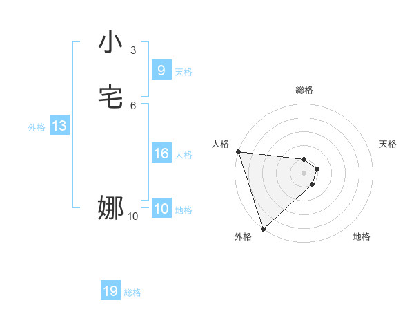 小宅 娜さんの外格は13画の5点!