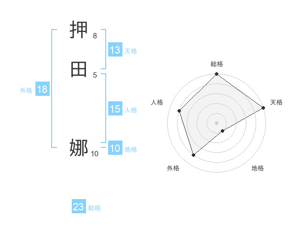 押田 娜さんの天格は13画の5点!
