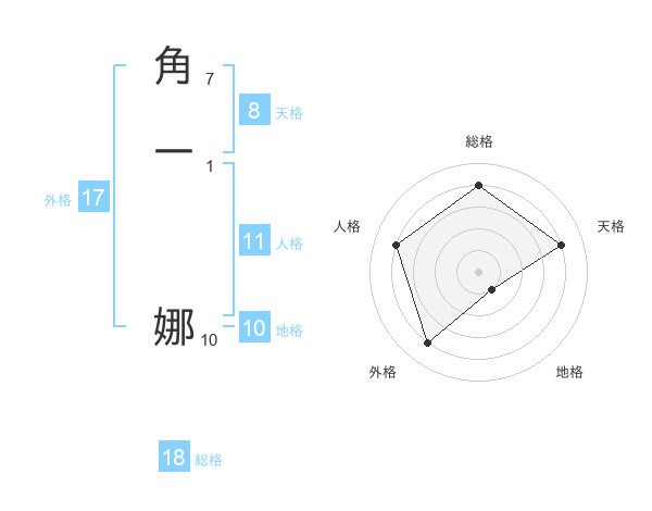 角一 娜さんの天格は8画の4点!
