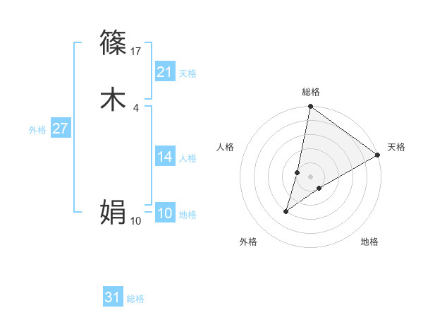 篠木 娟さんの総格は31画の5点!