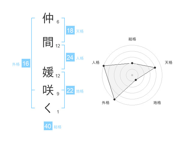 仲間 媛咲くさんの外格は16画の5点!