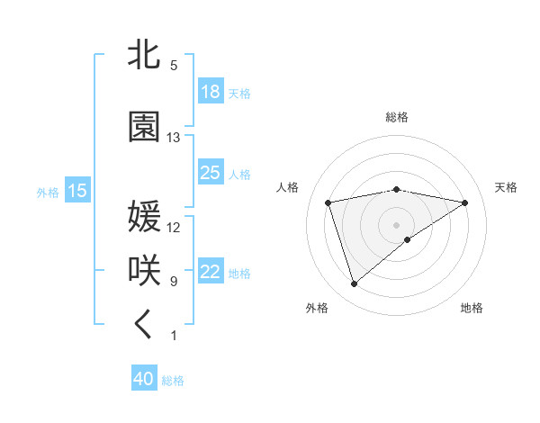 北園 媛咲くさんの外格は15画の4点!