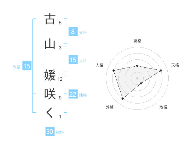 古山 媛咲くさんの天格は8画の4点!