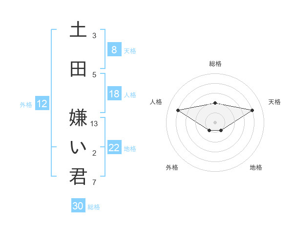 土田 嫌い君さんの総格は30画の2点