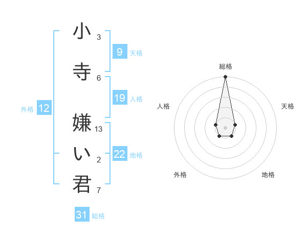 小寺 嫌い君さんを姓名の画数から五運を鑑定