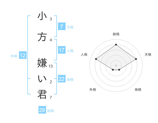 小方 嫌い君さんを姓名の画数から五運を鑑定