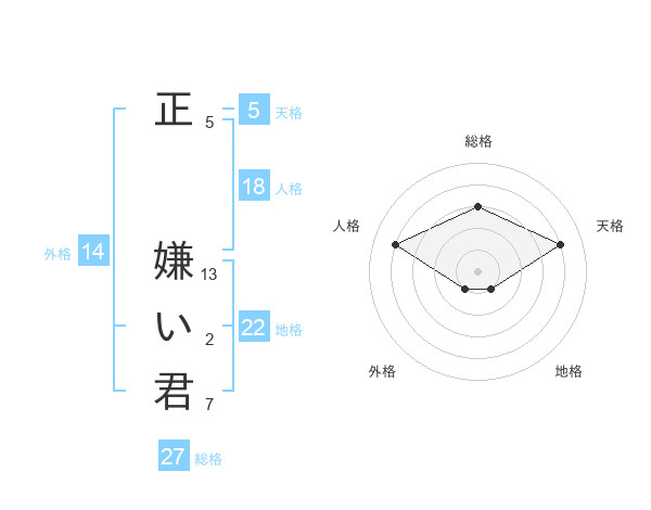 正 嫌い君さんを姓名の画数から五運を鑑定