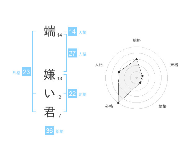 端 嫌い君さんを姓名の画数から五運を鑑定