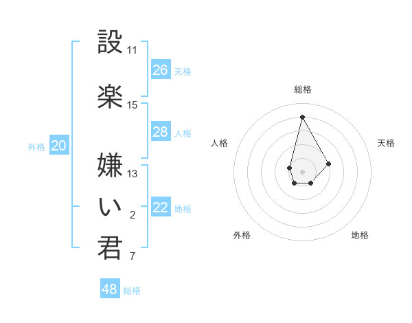 設楽 嫌い君さんを姓名の画数から五運を鑑定