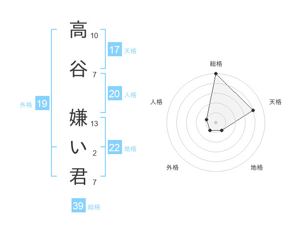 高谷 嫌い君さんを姓名の画数から五運を鑑定