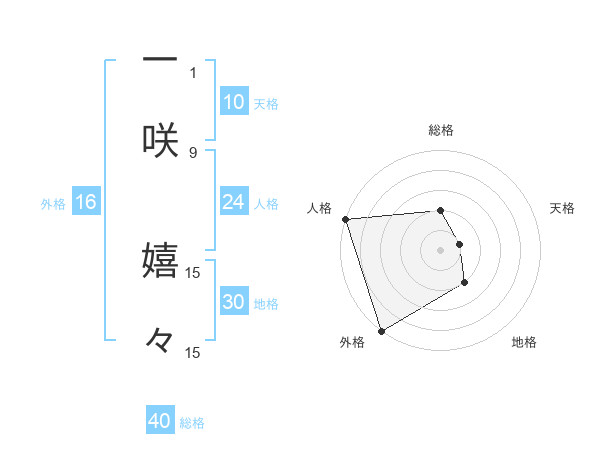 一咲 嬉々さんを姓名の画数から五運を鑑定