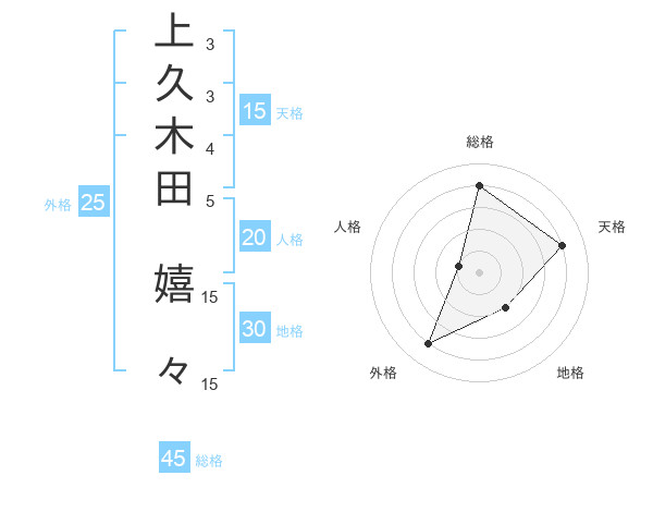 上久木田 嬉々さんの総格は45画の4点!