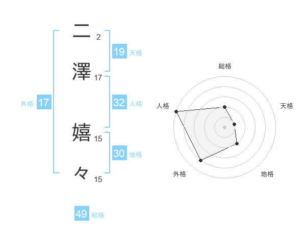 二澤 嬉々さんの外格は17画の4点!