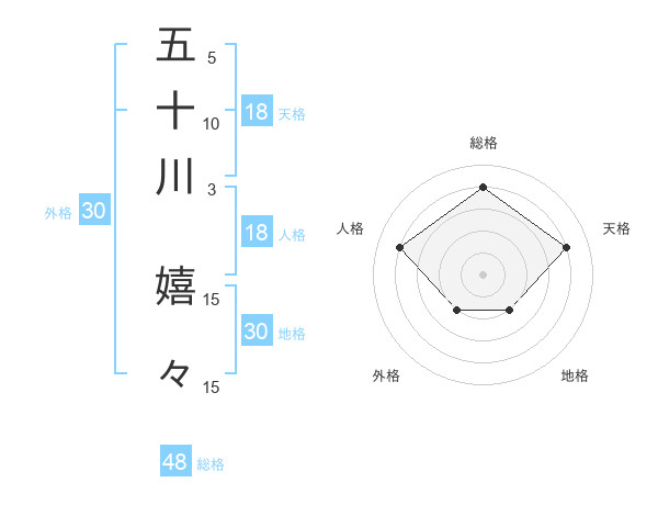 五十川 嬉々さんを姓名の画数から五運を鑑定