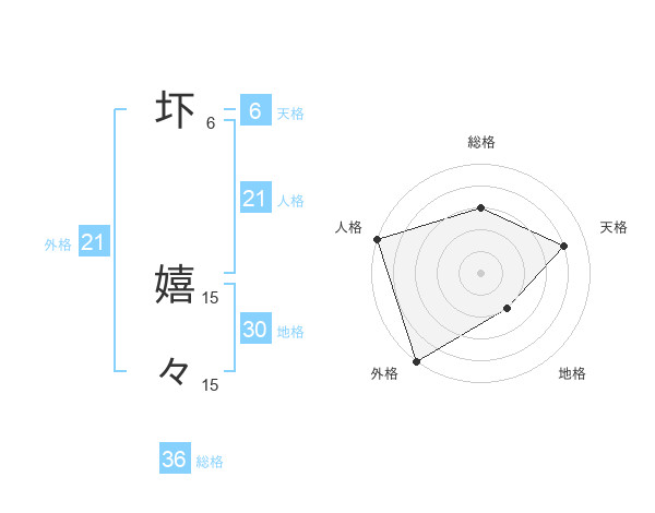 圷 嬉々さんの外格は21画の5点!