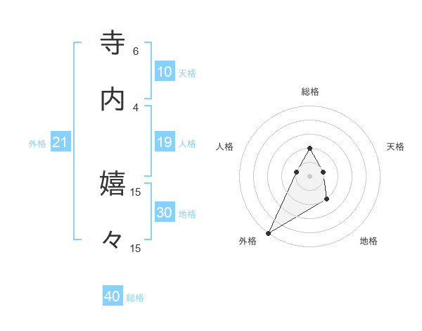 寺内 嬉々さんを姓名の画数から五運を鑑定