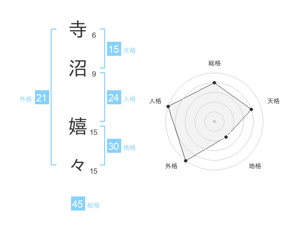 寺沼 嬉々さんの外格は21画の5点!