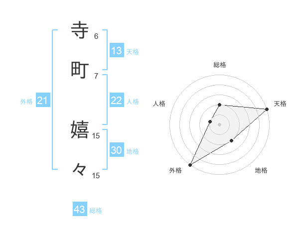 寺町 嬉々さんを姓名の画数から五運を鑑定