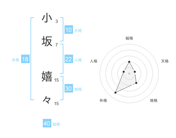 小坂 嬉々さんを姓名の画数から五運を鑑定