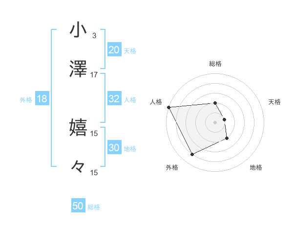 小澤 嬉々さんを姓名の画数から五運を鑑定