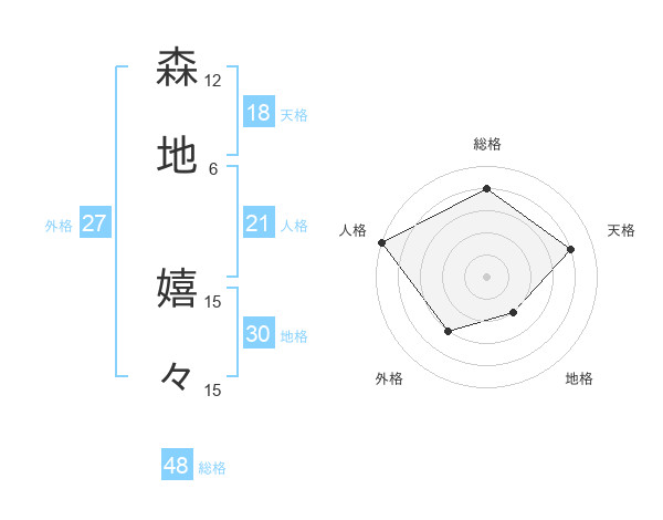 森地 嬉々さんを姓名の画数から五運を鑑定