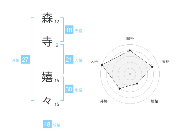 森寺 嬉々さんの地格は30画の2点!