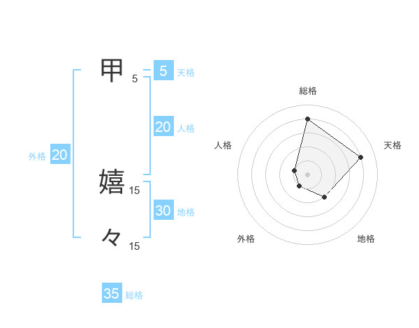 甲 嬉々さんの総格は35画の4点!