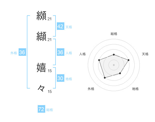 纐纈 嬉々さんの総格は72画の2点!