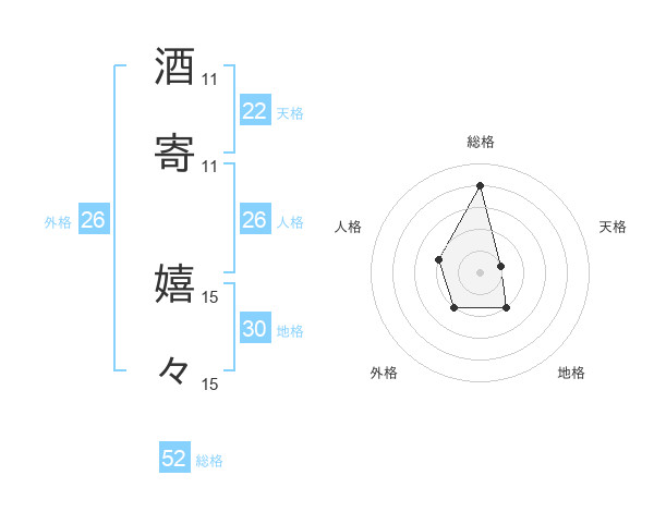 酒寄 嬉々さんの総格は52画の4点!