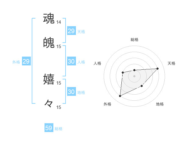 魂魄 嬉々さんを姓名の画数から五運を鑑定