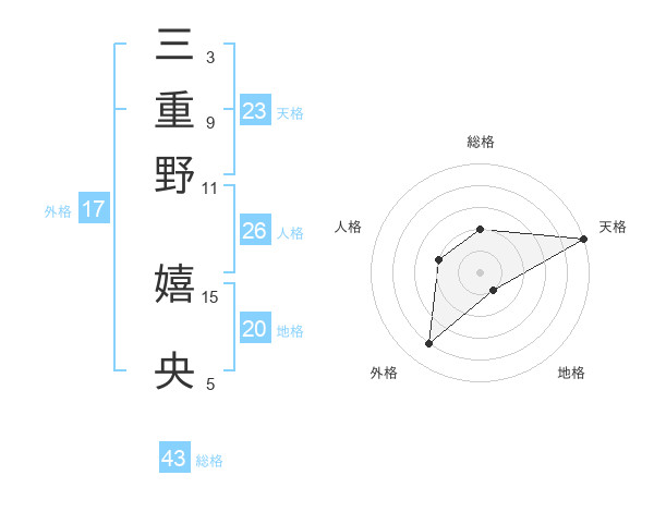 三重野 嬉央さんを姓名の画数から五運を鑑定