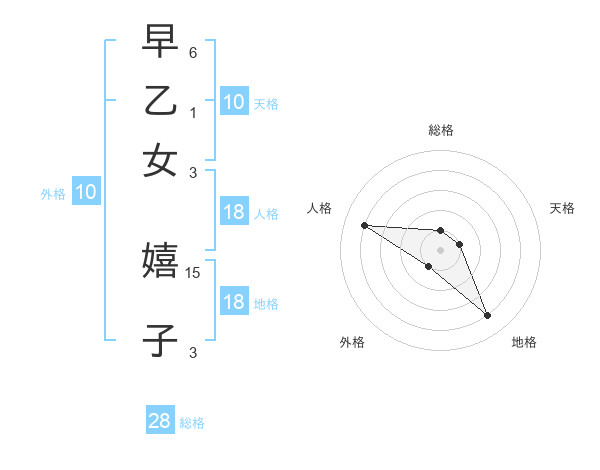 早乙女 嬉子さんを姓名の画数から五運を鑑定