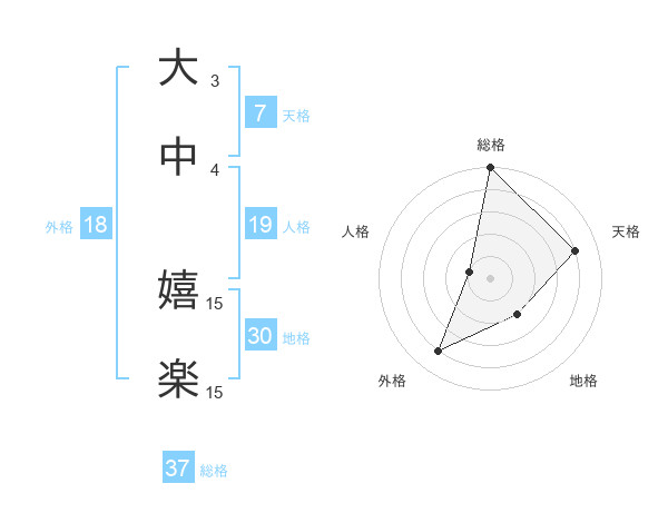 大中 嬉楽さんを姓名の画数から五運を鑑定