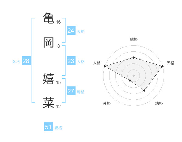 亀岡 嬉菜さんを姓名の画数から五運を鑑定