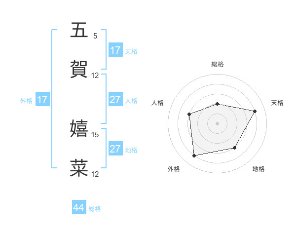 五賀 嬉菜さんの総格は44画の2点!