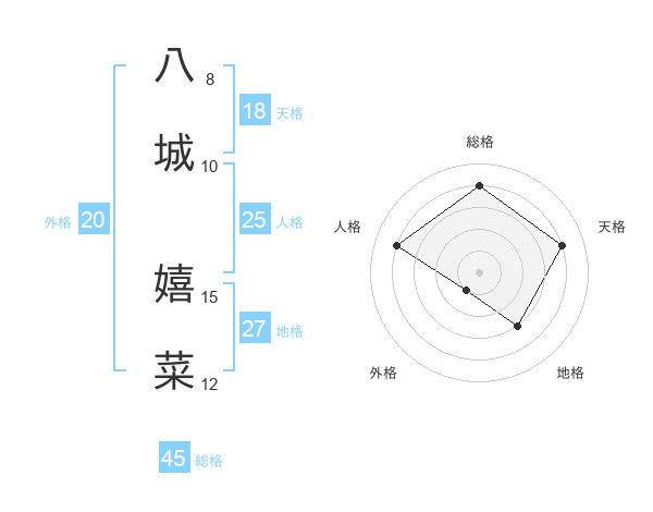 八城 嬉菜さんの総格は45画の4点!