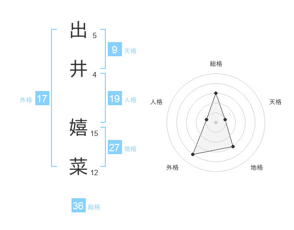 出井 嬉菜さんを姓名の画数から五運を鑑定