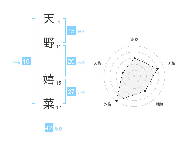 天野 嬉菜さんの総格は42画の3点!