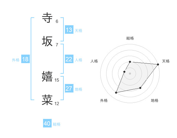 寺坂 嬉菜さんの総格は40画の2点!