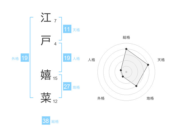 江戸 嬉菜さんの総格は38画の4点!