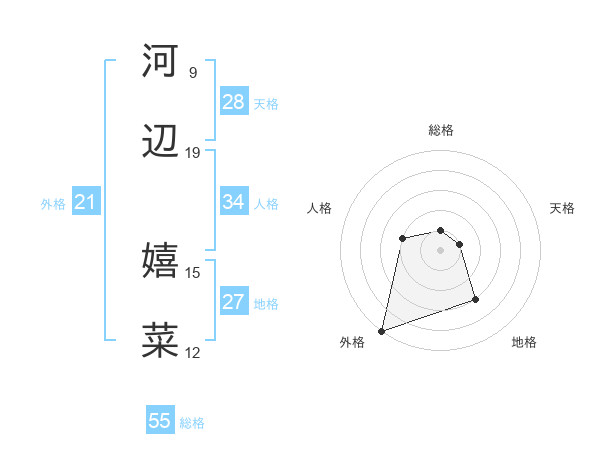 河辺 嬉菜さんの外格は21画の5点!