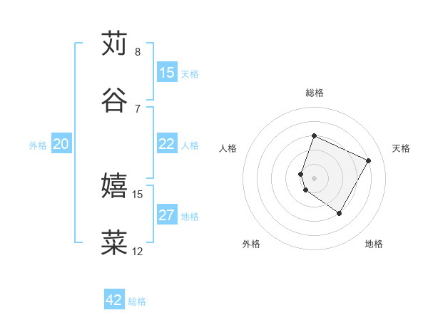 苅谷 嬉菜さんを姓名の画数から五運を鑑定