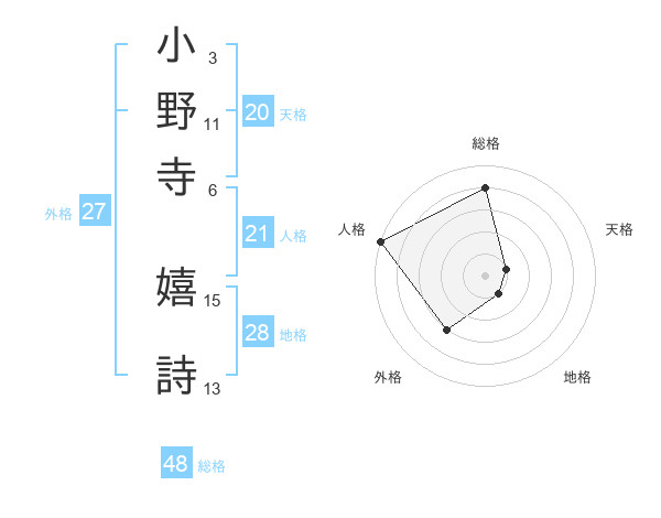 小野寺 嬉詩さんを姓名の画数から五運を鑑定
