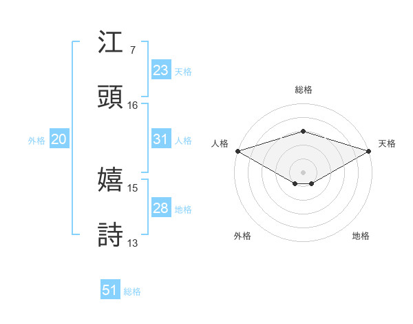 江頭 嬉詩さんを姓名の画数から五運を鑑定