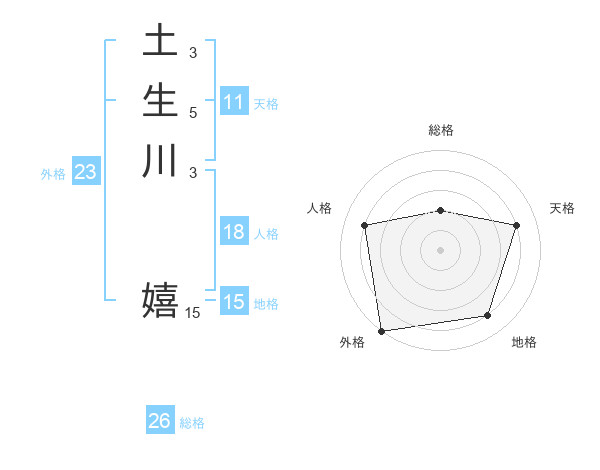 土生川 嬉さんの外格は23画の5点!