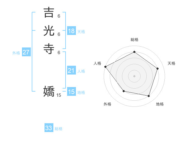 吉光寺 嬌さんの人格は21画の5点!