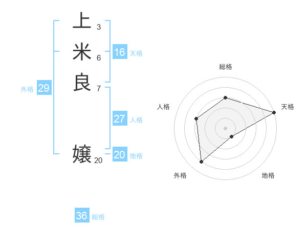 上米良 嬢さんを姓名の画数から五運を鑑定