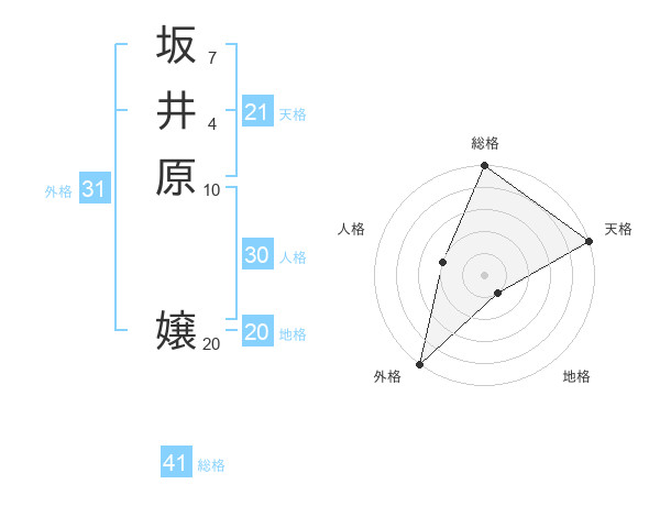 坂井原 嬢さんの総格は41画の5点!