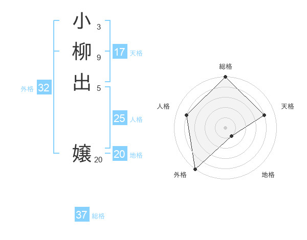 小柳出 嬢さんの外格は32画の5点!