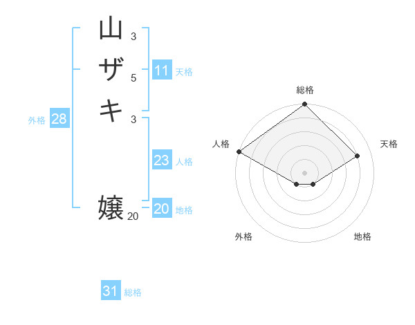 山ザキ 嬢さんを姓名の画数から五運を鑑定